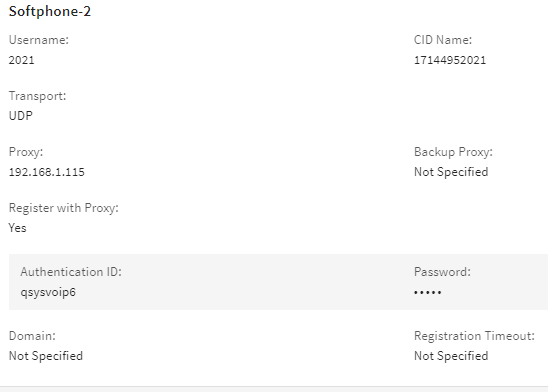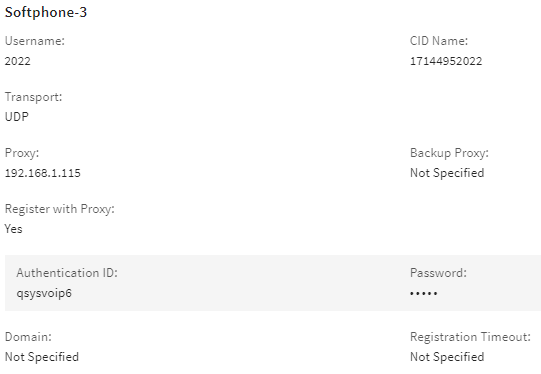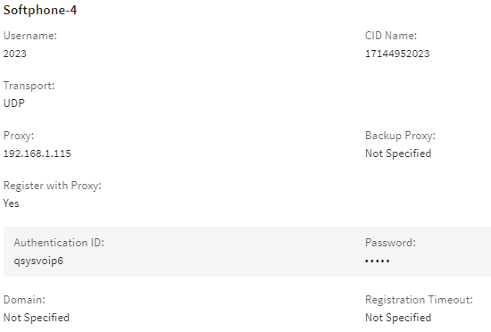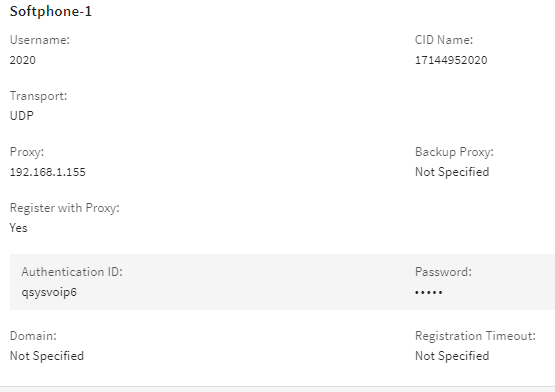 Click on the Q-SYS Softphone’s Device Name. Its Phone Configuration page appears.