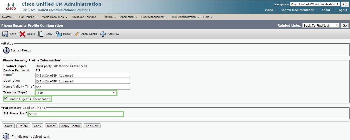 Configure the Device Security Profile, SIP Profile, and Digest User.