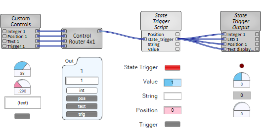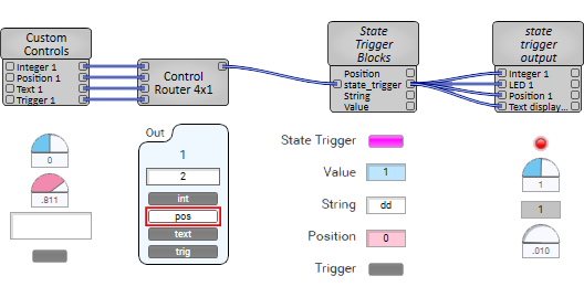 - Position set - the state is updated, quantized to integer values. For example, if a State Trigger has three states (0, 1, and 2) and the position is changed to 0.9, the value is updated to 2 and the position is quantized to 1.