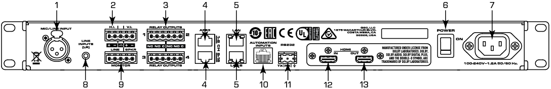 The Digital Cinema Input/Output for Q-SYS (DCIO) is a cinema-specific interface that serves as the audio I/O for each screen in a Q-SYS enabled cinema complex.