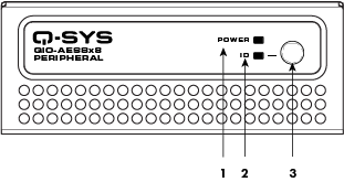 Power LED – Illuminates blue when the Q-SYS QIO-AES8x8 is powered on.