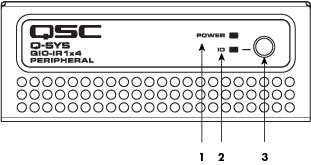 Power LED – Illuminates blue when the Q-SYS QIO-IR1x4 is powered on.