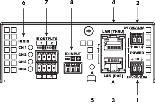 IR SIG LEDS – Indicate transmit activity for CH/IR Output 1-4.