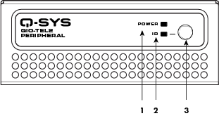 Power LED – Illuminates blue when the Q-SYS QIO-TEL2 is powered on.