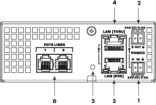 External Power Input 24V DC 2.5 A – Auxiliary power, 24 VDC, 2.5 A, 2-pin Euro connector.
