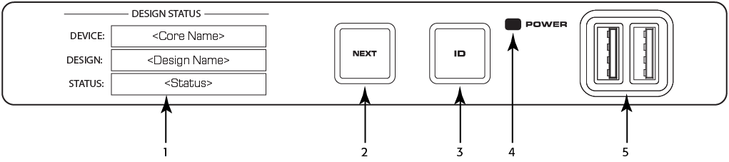- ID button – locates the Core in Q-SYS Designer GUI and Configurator