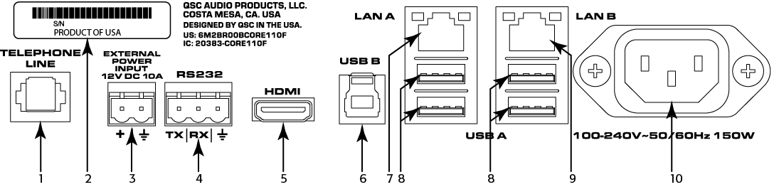 - LAN A – Q-LAN, control, VoIP, WAN streaming, AES67 etc., RJ45