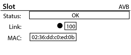 - MAC – Displays the MAC (Media Access Control) address of the AVB card.