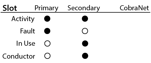 - Conductor - Displays a solid circle when the Primary or Secondary port is the Conductor.