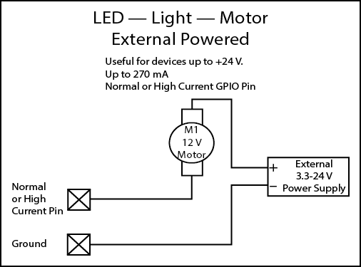 Note: The maximum current sourced by one GPIO connector (including both High Current and Power Pins) is 400mA.