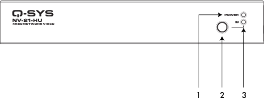 - ID Button – Locates the NV-21-HU in Q-SYS Designer Software and Q-SYS Peripheral Manager.