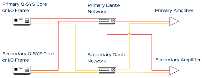 - The Q-SYS Core's primary (LAN A) and secondary (LAN B) network interfaces must be isolated by completely separate network infrastructures or VLANs with no routing between them.