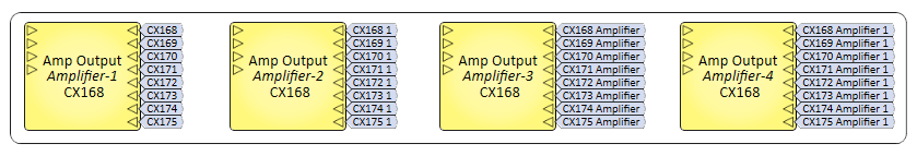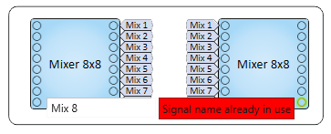As you copy and paste the Signal Names to the input / output they belong, the Signal Name will enumerate to prevent multiple connections on the same input / output.