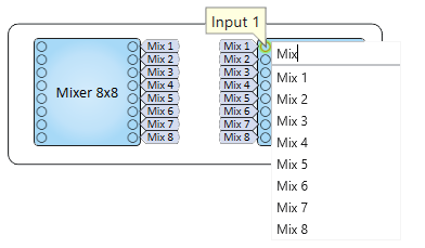 - If you choose a name from the list of source names, all the destination names created are duplicates of the one you selected. (One output going to multiple inputs.)