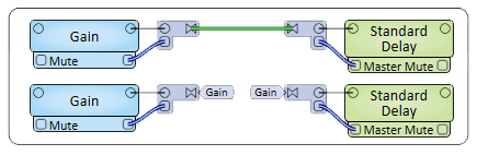 - You can link a mute button in a Gain component with the mute button in a Crossover component. When the mute button in the Gain control panel is activated, the mute button in the Crossover control panel is activated at the same time.