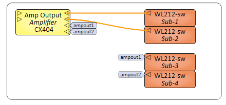 ) triangle, and the wiring is represented by a thin orange line. You can use Signal Names with loudspeaker signal pins.