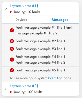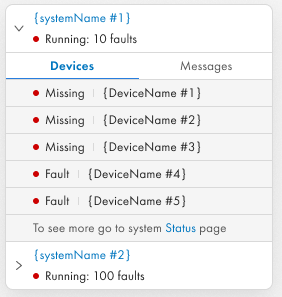 - The expandable list belongs to the ‘Faults’ and ‘Warnings’ statuses.
