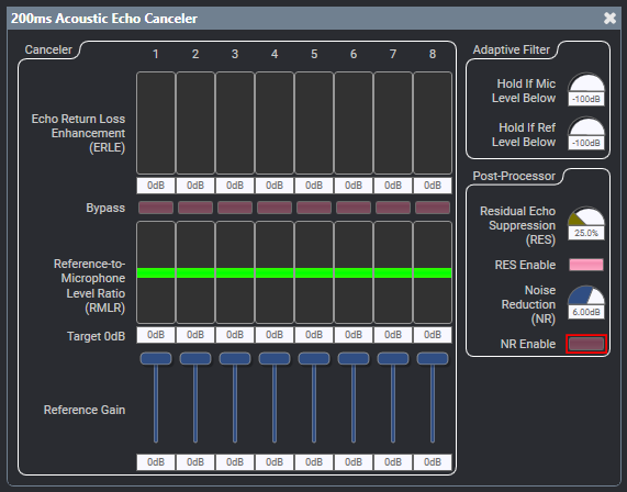 Also make adjustments to the Reference-to-Microphone Level Ratio (RMLR) to ensure the Far-End reference signal is approximately equal to the Near-End microphone signal (indicated by ratio of 0 dB).