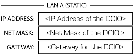 - Static, Auto or No Link – Displays next to LAN A, indicates if the device's IP Address is Static, Automatic, or No Link.