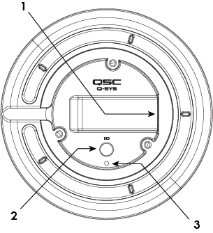 - ID Button: Press to identify this unit in Q-SYS Designer Software or Q-SYS Configurator.