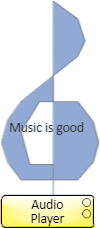 In this example, the treble clef is assigned to the Play button of the Audio Player. If it was in a design or UCI, clicking the treble clef sign would start playing the selected file.