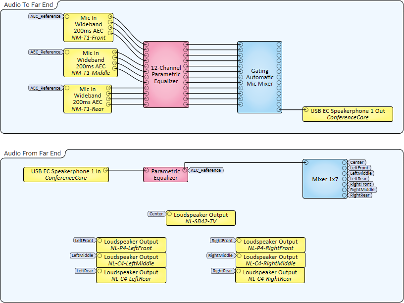 Tip: Because the NM-T1 Mic In component includes integrated AEC processing, no additional AEC configuration with a separate Acoustic Echo Canceler component is needed.