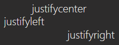 Use the justify tags in combination with textbodydisplay, textheadingdisplay, textlabeldisplay (shown), or texttitledisplay. |