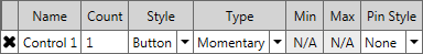 - For each row, in addition to the name representing that row, choose the count of controls, a style, type, Min/Max (if applicable) and Pin Style